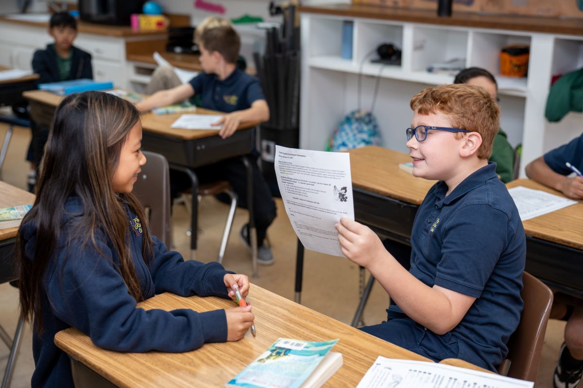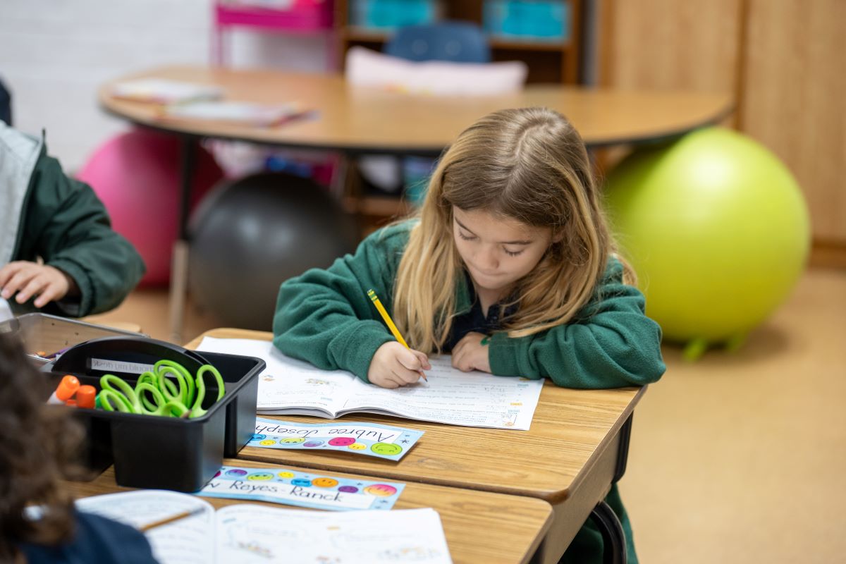 Students develop strong writing foundations through handwriting, grammar, storytelling, and structured writing introduced in age-appropriate ways. As they grow, they practice editing, organizing ideas, using text evidence, and expressing themselves clearly, milestones that support success in middle school and beyond.